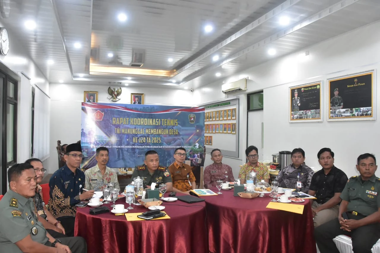 BENGKALIS, TIMENEWSNUSANTARA.COM Bersama Dandim 0303 Bengkalis, Letkol Arh Irvan Nurdin, Bupati Bengkalis Kasmarni, diwakili Staf Ahli Bupati Bidang Kemasyarakatan dan Sumber Daya Manusia (SDM), Johansyah Syafri mengikuti rapat virtual terhadap pelaksanaan TNI Manunggal Membangun Desa (TMMD) ke-124, di Makodim 0303 Bengkalis, Kamis, 24 April 2025.